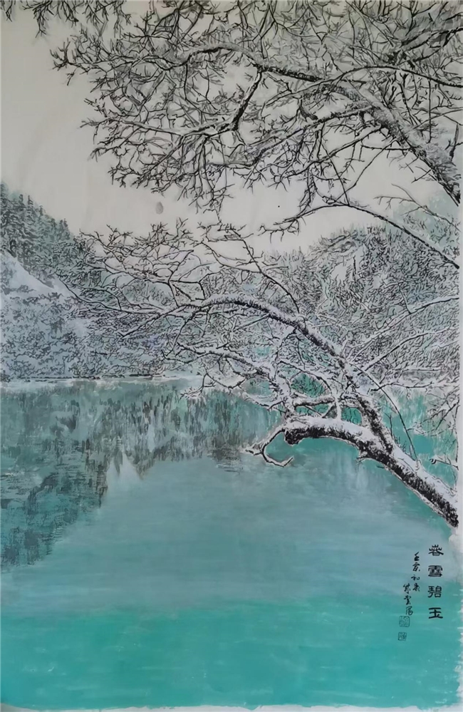 古人云:“痴书者,文必工,痴艺者,技必良”多年来余成云静心习艺,走进大自然,在大自然中汲取营养,获取灵感。他要求自己的每幅作品都有独特的艺术创意,独到的生命追求,独具的精神风骨,给人以精神的鼓励,艺术的享受。在他的不懈努力下,其书法、美术各具造诣、齐头并进。美术方面余成云的山水、花鸟、人物、写意、工笔、剪纸、木刻、瓷盘画各领风骚。在书法方面余成云六体皆能,尤其是他笔下的雪景高洁、质朴、深沉、凝重,大气磅礴,栩栩如生,叹为观止,生动描绘出雪后山林庭院、花草树木,仅仅靠墨色的浓淡变化,留白就能表现出雪的平静冷凝之态。其雪中之树更具深郁寒峭之意,其构图精巧,意境悠远,或自出机杼,独具匠心,似有“人在画中行,画在景中游”之美感,每一笔都蕴含着激情与生命,自成一派,极具收藏价值。