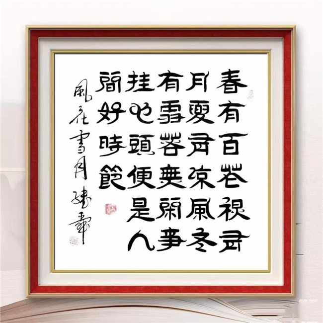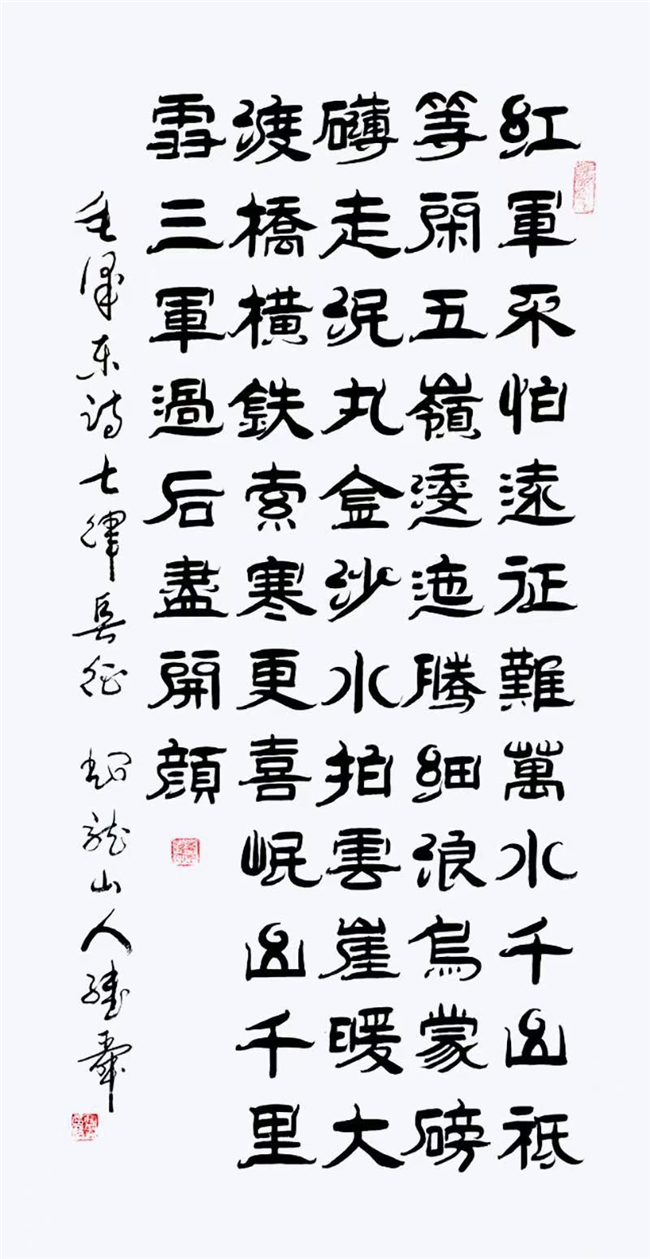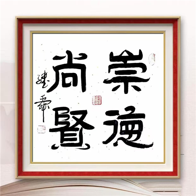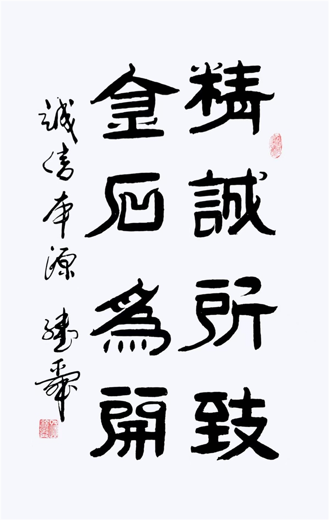 路继舜的社会知名度,更多在于先生的个性隶书: 特点“正、重、俊、活”。先生注重研究传统.隶书规律,独创“龙须凤翅”的隶法隶韵。艺术风格: 棱角力交,灵动俊秀,人称“路隶”。观者一看便知出自谁的手笔。耄耋之年先生仍希望能为社会作点贡献,尽所能将书法及国学传承下去。