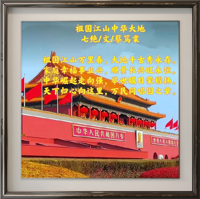祖国江山万里春,大地千古秀永存。