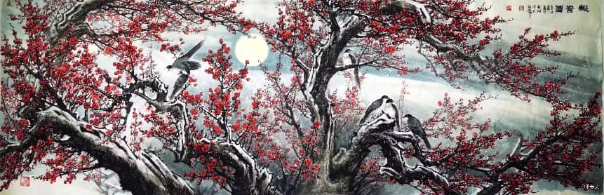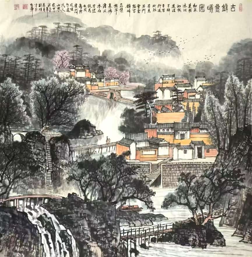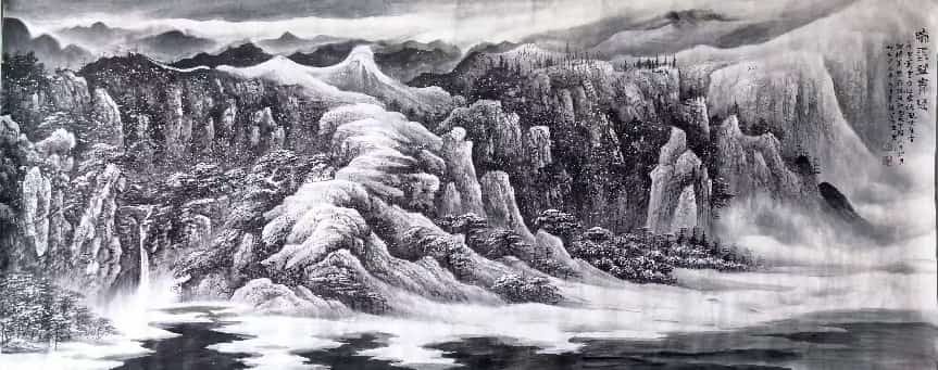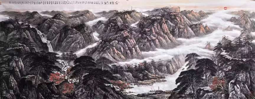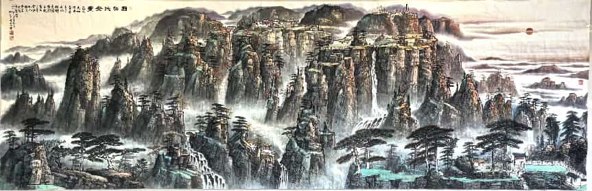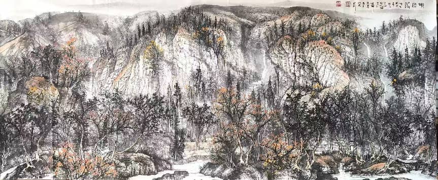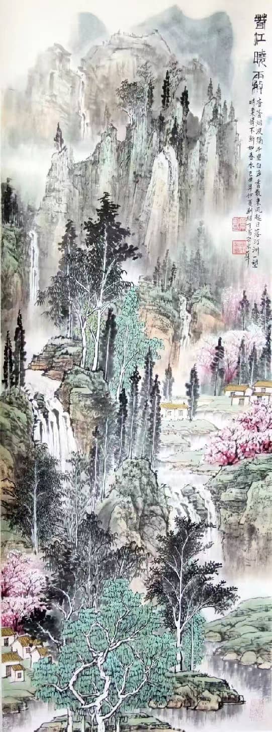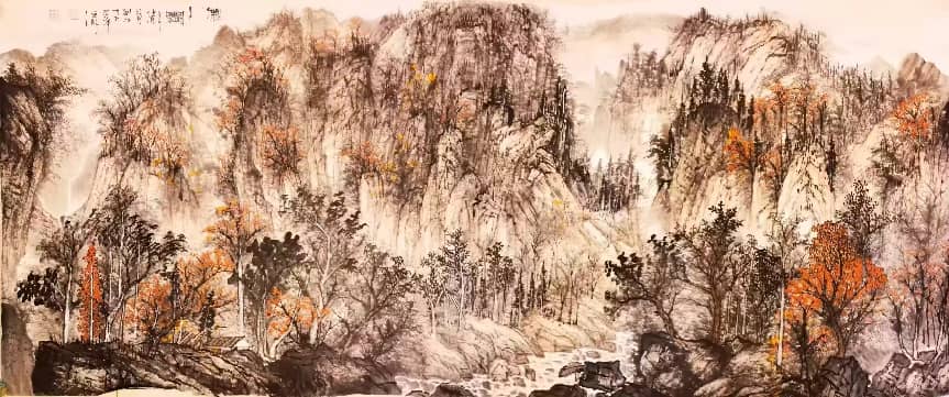 - 笔墨气质:兼工带写,色墨交融、刚柔相济;构图大开大合,擅营造深远空间,兼具传统法度与现代视觉张力。