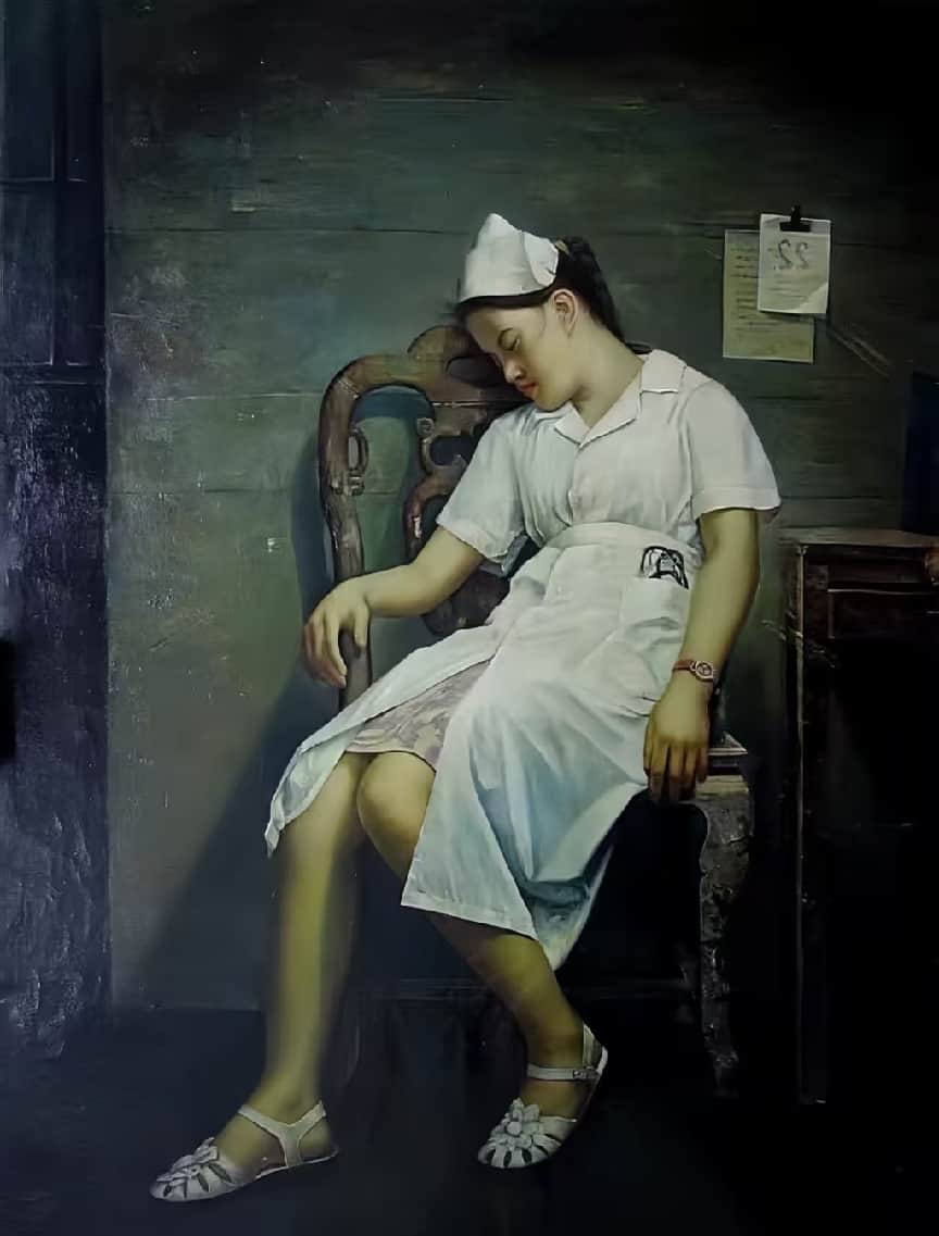2005 年 9 ⽉⾄ 2006 年 10 ⽉受中央军委委托⾛红⾊创作旅程,从井冈⼭、瑞⾦、兴国、赣州、到延安⾄西北坡考察红⾊征途系列,创作油画《编草鞋》、《四星望⽉》、《捷报传来》、《吃⽔不忘挖井⼈》等系列油画作品。