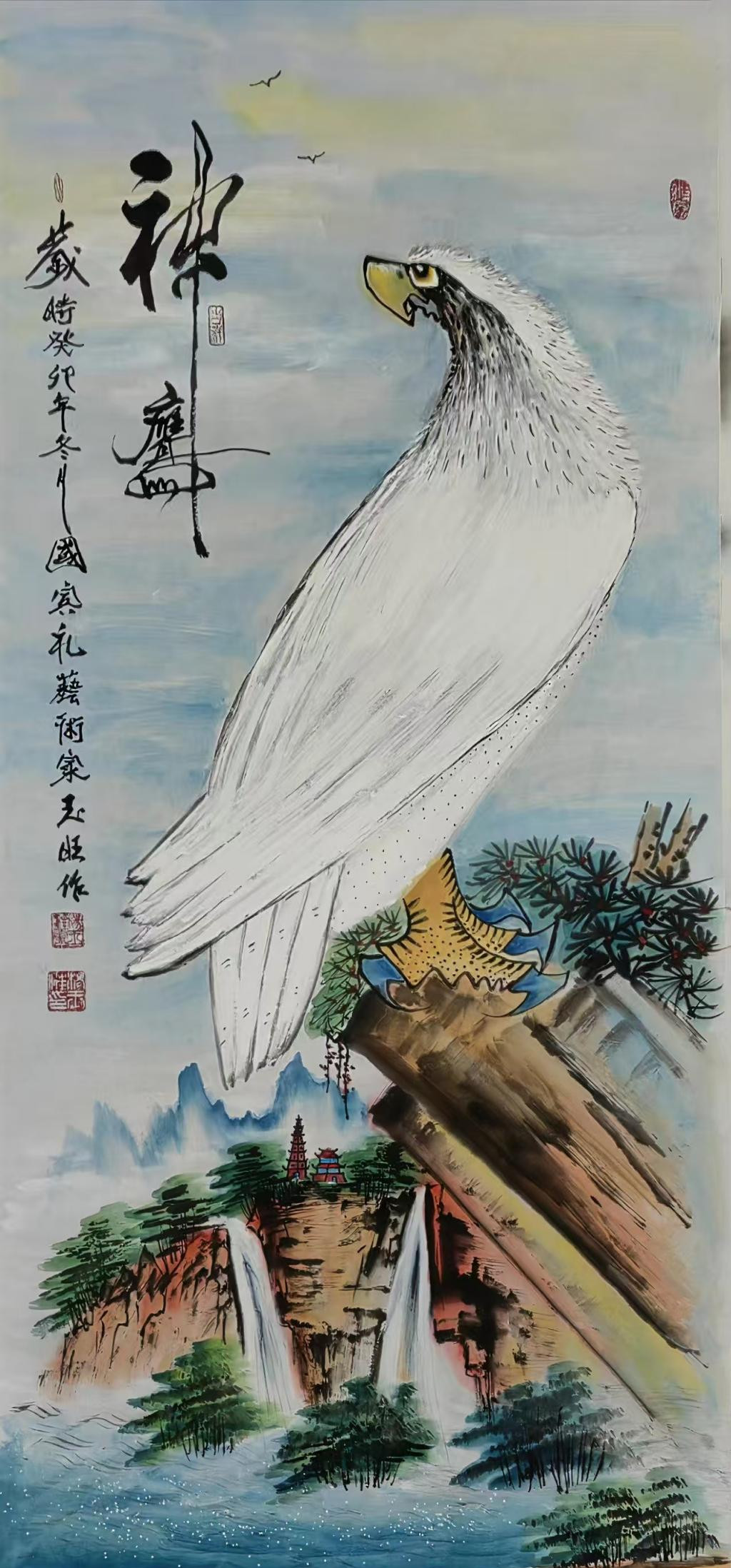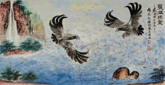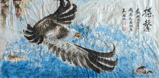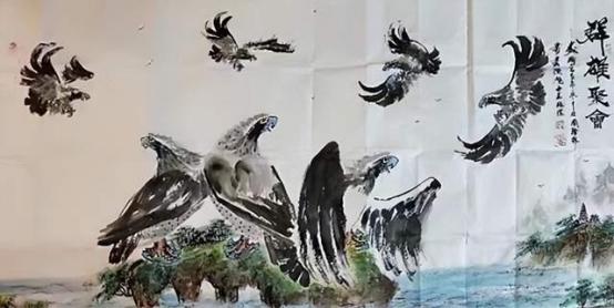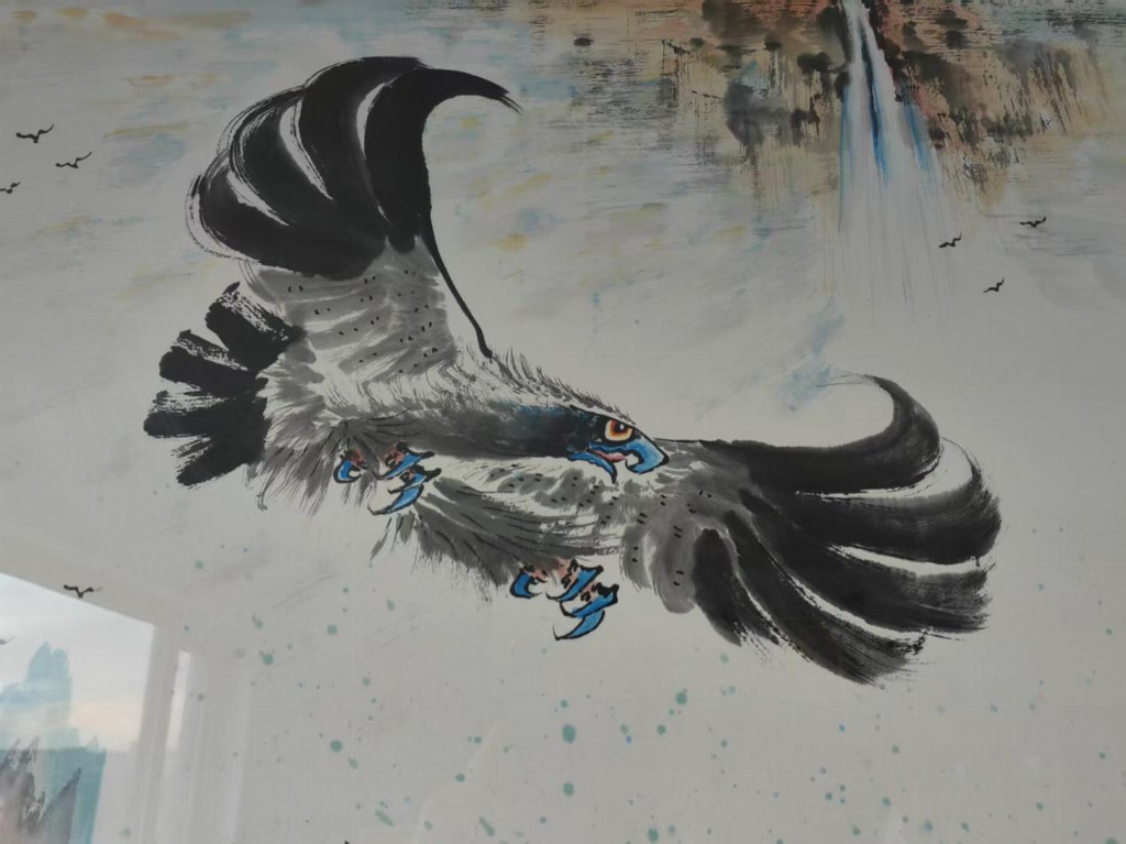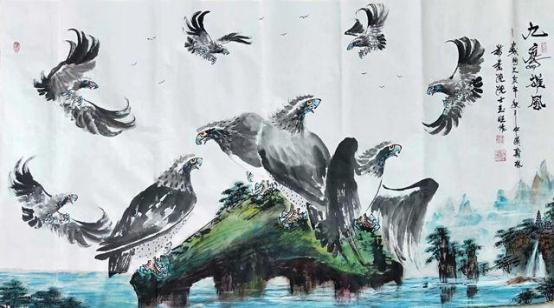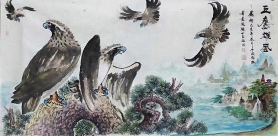 - 鹰画:形神兼备、雄浑刚健、阳刚气足;墨色干湿浓淡交融,羽毛质感厚实,鹰爪线条遒劲、鹰嘴双勾尖锐,气势超群。