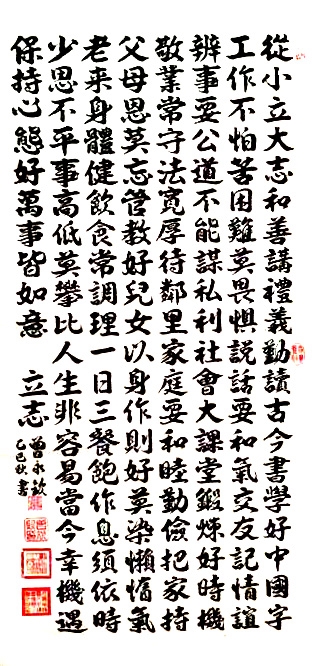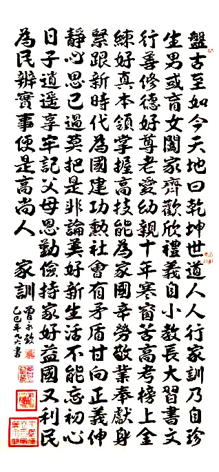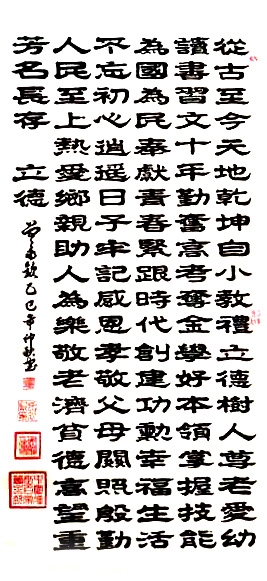 自小学习诗书画,富有书写、绘画、雕刻之长,经常为人书写画画,参加全国书画大赛中,多次获奖。仅在2018、2019年获“中国文化艺术节两个终身成就奖,《金犬金奖》和《金猪金奖》”;“中国艺术华表奖《金奖》”;“世界非物质文化遗产功勋奖《金奖》”;“中日艺术交流会《樱花金奖》”;“澳门回归20周年《莲花金奖》”;“中国文艺大师终身成就《金奖》”;“纪念毛主席诞生125周年《中国红色文化传播金奖》和《红色特别金奖》”;庆祝改革开放四十周年,国庆七十年献礼创作书法题贺大赛均获两个《特等奖》;“首届中国诗书画《大阅兵》获《金奖》”。两年来参加出版有《大国大家》、《中华国礼艺术大师、《引领新时代中国大家》、《祖国颂》、《中国文艺四十年》、《中日人民最好艺术家》、《中华人民共和国成立首届诗书画大阅兵创作大赛作品集》、《东方红杯》等多本大型画集。