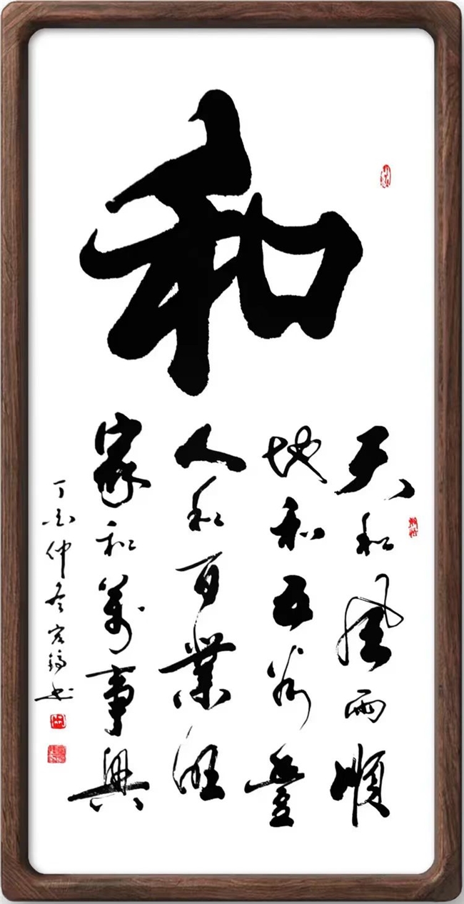 6、在全国热播影视剧《春天里》中,上屏率最高的背景墙上,挂的就是其《和》字书法。