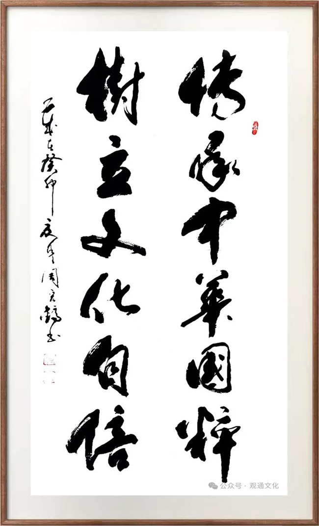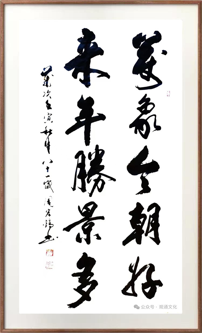 1、2017 年书法作品《江流归大海·高路入云端》被光荣镌刻在北京八达岭长城脚下的新长城文化园的石碑上,无上荣光。此后,2017 年 11 月受邀作为艺术家的代表,参加了在北京举办的“2017 长城论坛特别峰会”。