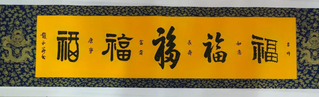 赵永华老师挥毫双笔交替横向反书,被文旅部审定为非遗创始人。