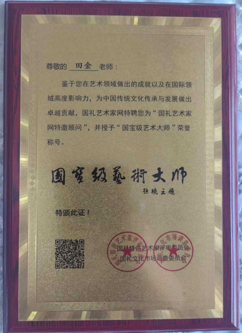 田金,1956年生,河北省张家口市蔚县人。毕业于宣师和张家口教育学院,双大专学历。中共党员。中国山水画画家,师承著名画家刘天瑶,中学一级美术教师,河北蔚县老年大学教师,张家口市老年书画研究会理事,《老人世界》刊物通讯员,中国东方文化研究会美术研究员,央视书画频道签约艺术家,清华美院客座教授,获国宝级艺术大师荣誉称号,并有中国馆藏级艺术名家和世界艺术泰斗之荣誉。